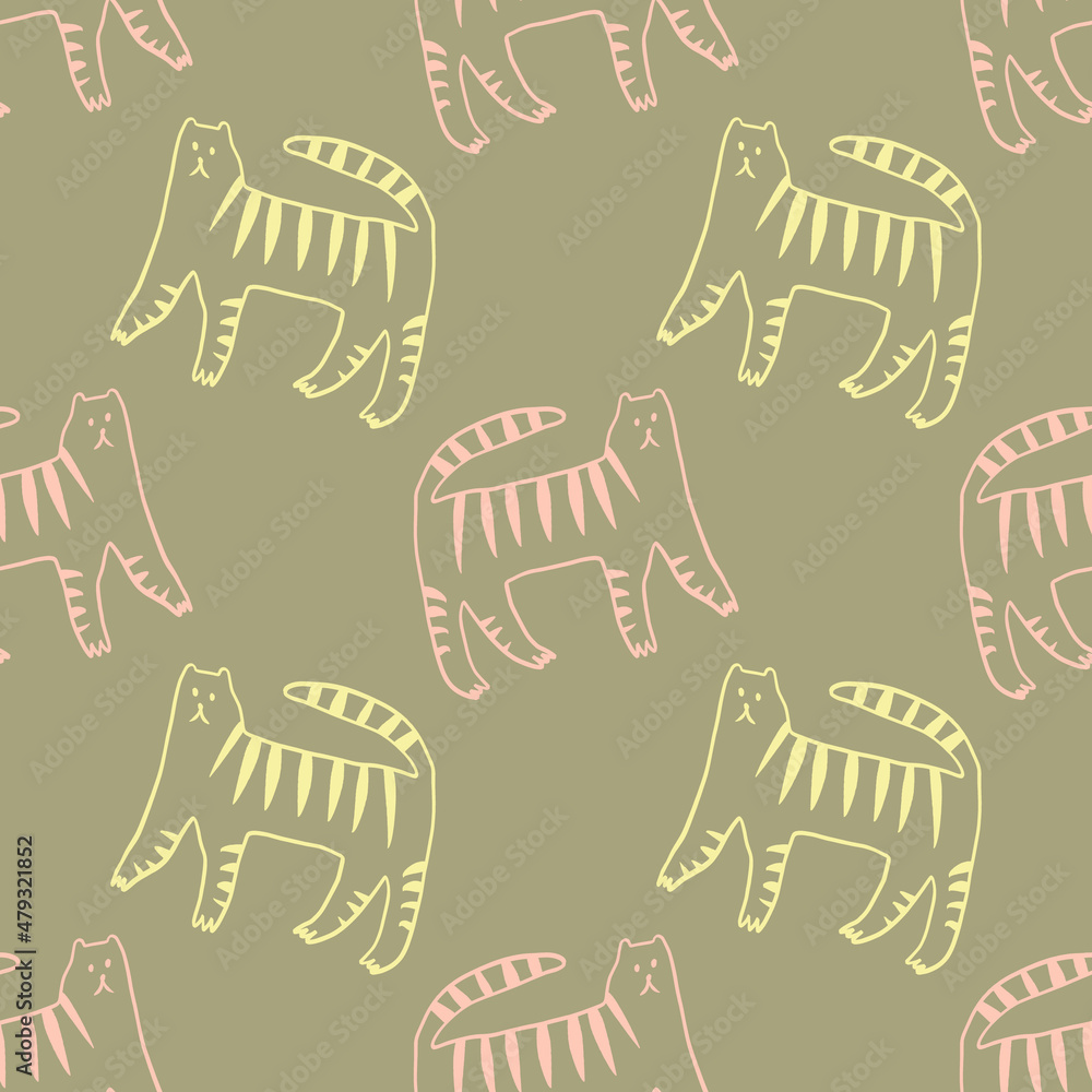 Fototapeta Doodle tigers childish cartoon groovy boho illustration naive funky handdrawn st