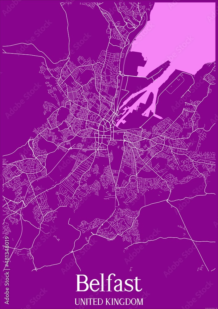 Fototapeta Purple map of Belfast United Kingdom.