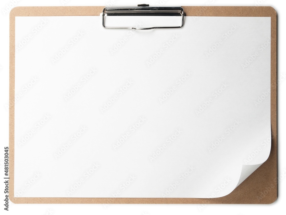Fototapeta Horizontal clipboard with blank paper and curled corner
