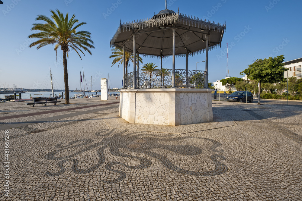 Fototapeta bandstand and traditional pavement in Portimao, algarve, portugal
