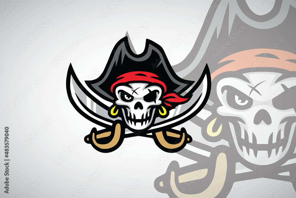 Fototapeta Pirate Skull Logo Design Vector Mascot Illustration Icon