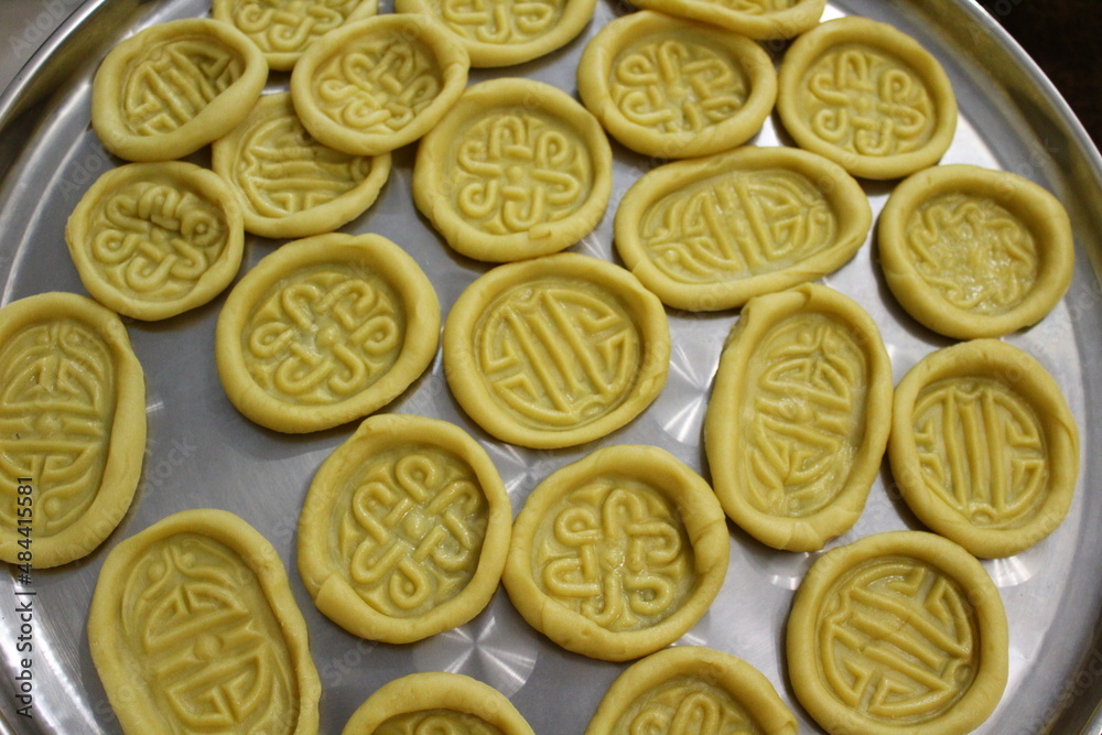 Fototapeta Uncooked mongolian traditional boov biscuits