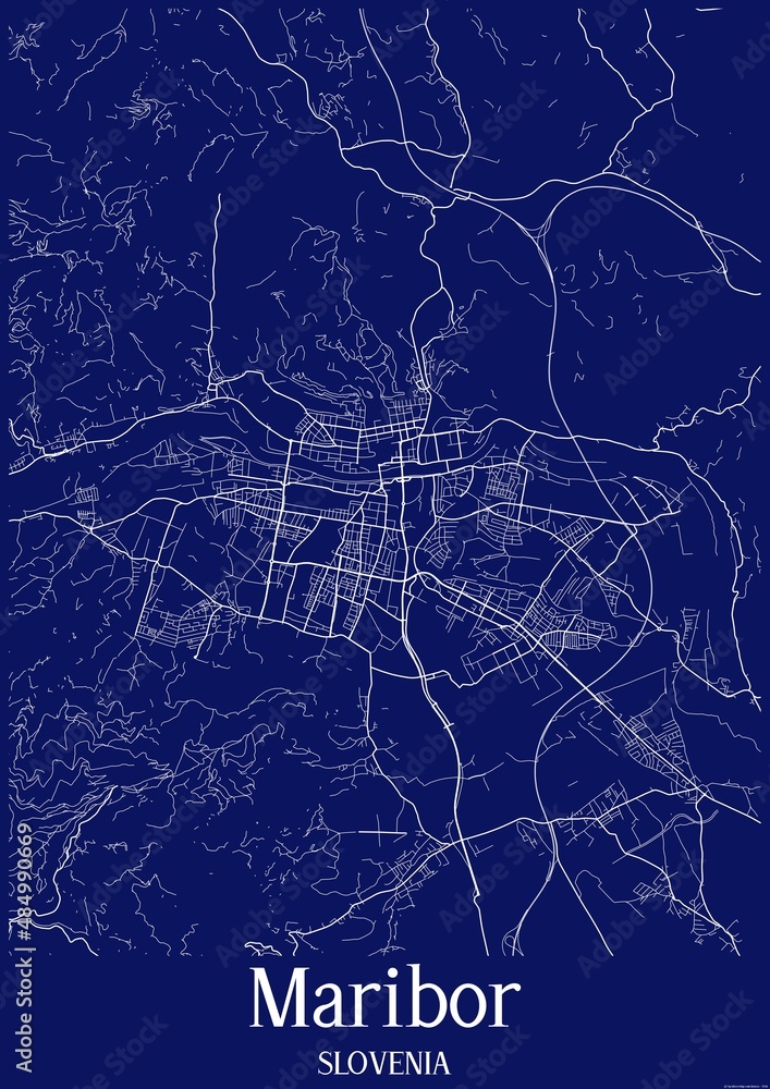 Fototapeta Dark Blue map of Maribor Slovenia.