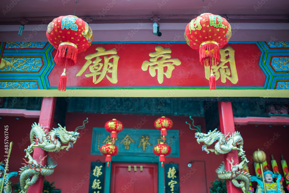 Fototapeta Chinese lanterns at a temple in Chinatown at night, Kuala Lumpur, Malaysia, Sout