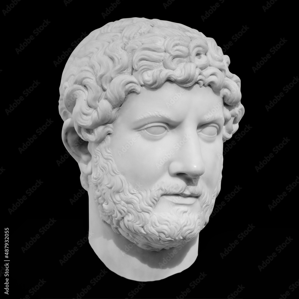 Fototapeta Ancient marble sculpture of the roman emperor Hadrian isolated on black with cli