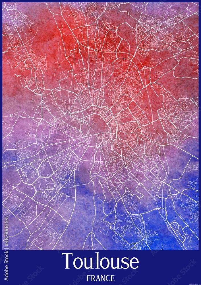Fototapeta Watercolor map of Toulouse France.