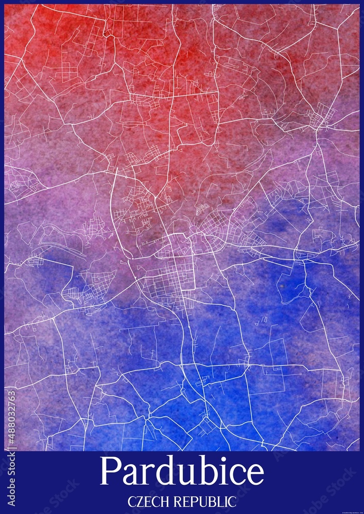 Fototapeta Watercolor map of Pardubice Czech Republic.