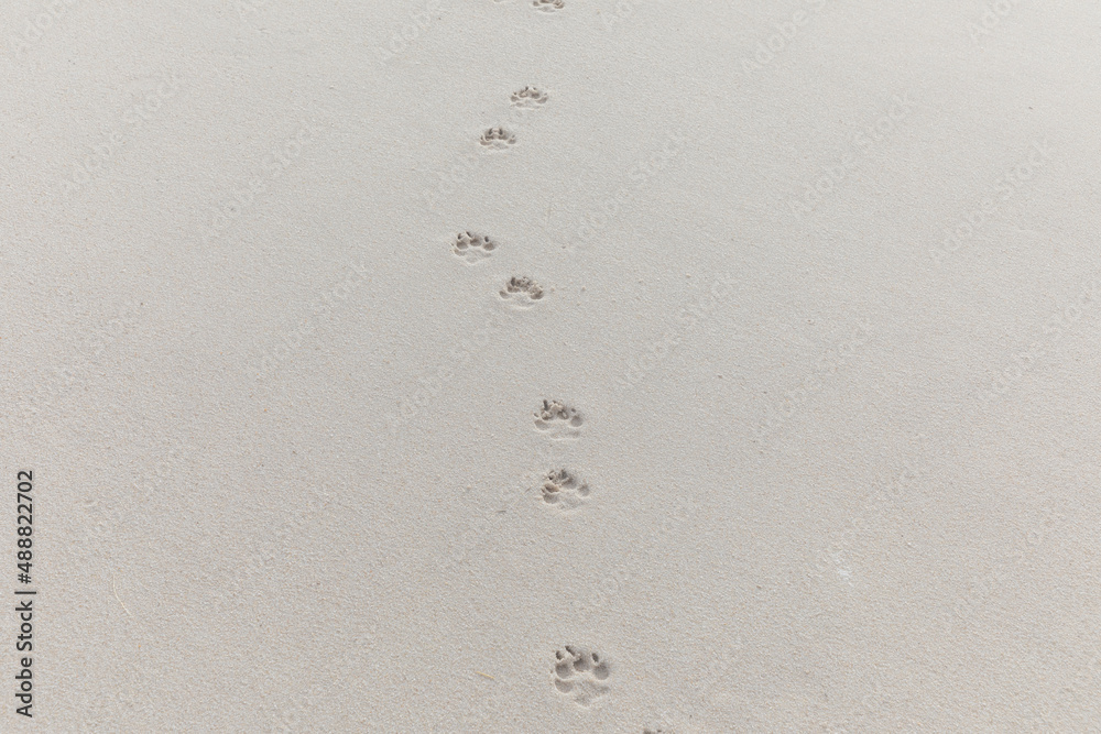 Fototapeta footsteps of a dog at the beach