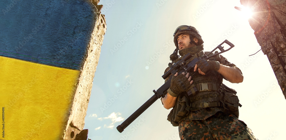 Fototapeta Ukrainian Soldier military in the war with a weapon in his hands