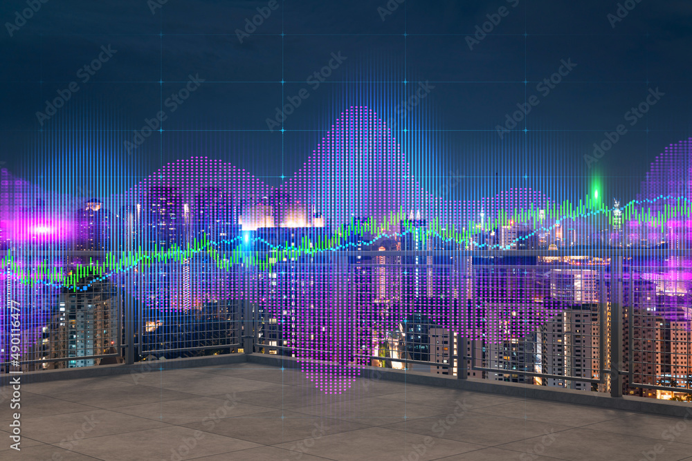 Fototapeta Rooftop with concrete terrace, Kuala Lumpur night skyline