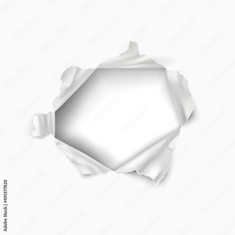 Fototapeta Torn hole in the sheet of paper. Paper frame.