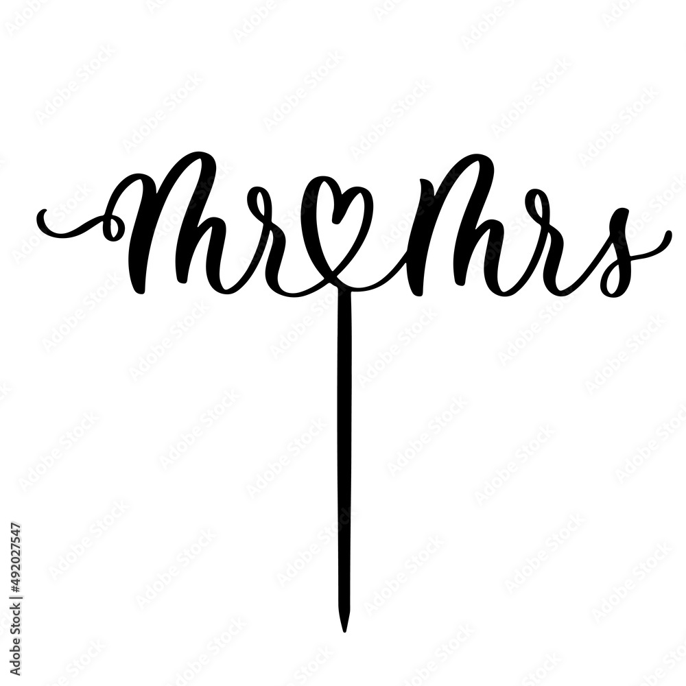 Fototapeta Mr and Mrs wedding lettering cake topper vector design, holiday calligraphy swirls