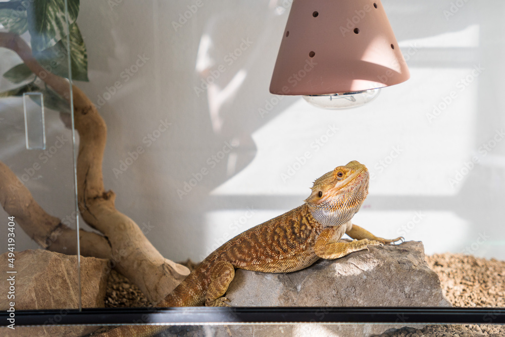 Fototapeta Detail of bearded dragon (pogona vitticeps) male in terrarium