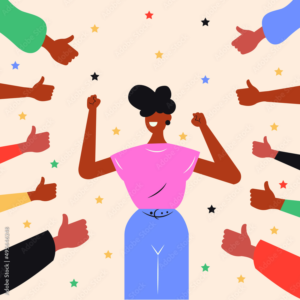 Fototapeta The girl is in the spotlight, loves compliments, everyone likes it, a star
