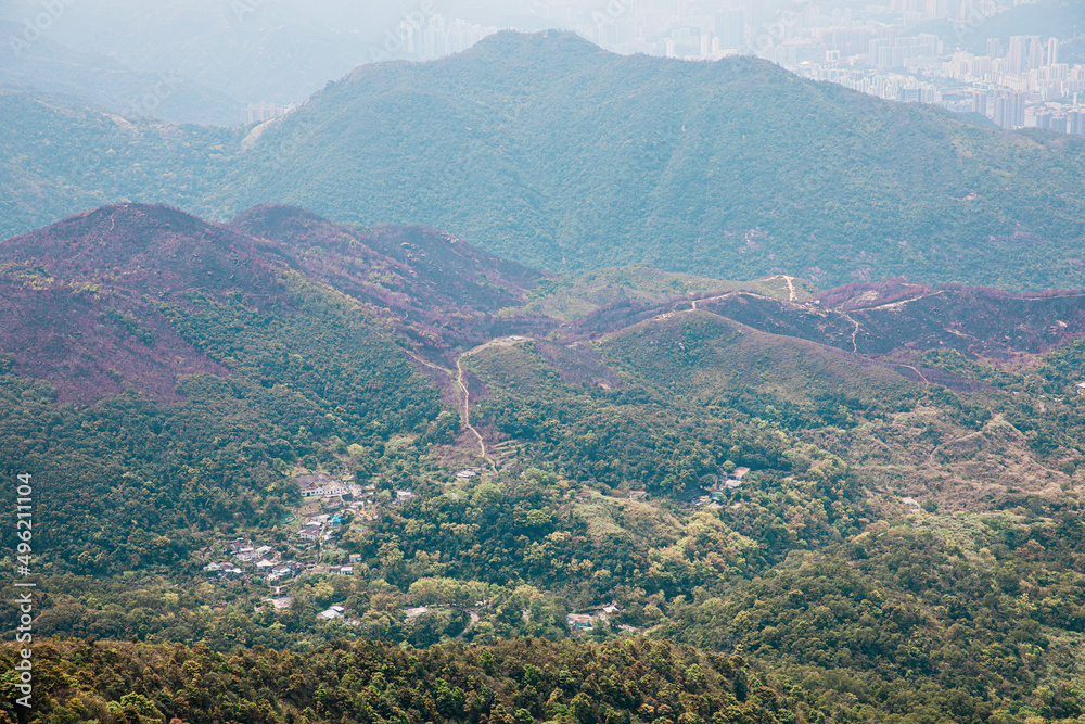 Fototapeta Landscape after wildfire. countryside near Sha Tin, Hong Kong