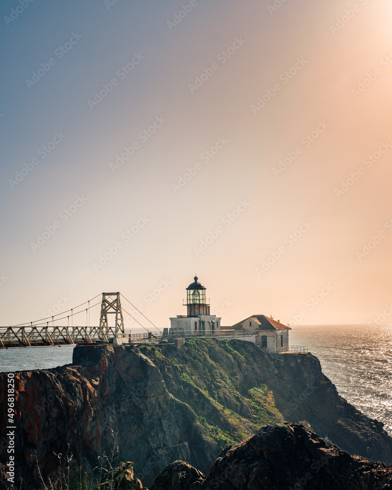 Fototapeta Vertical shot of the Point Bonita Lighthouse at sunset in San Francisco