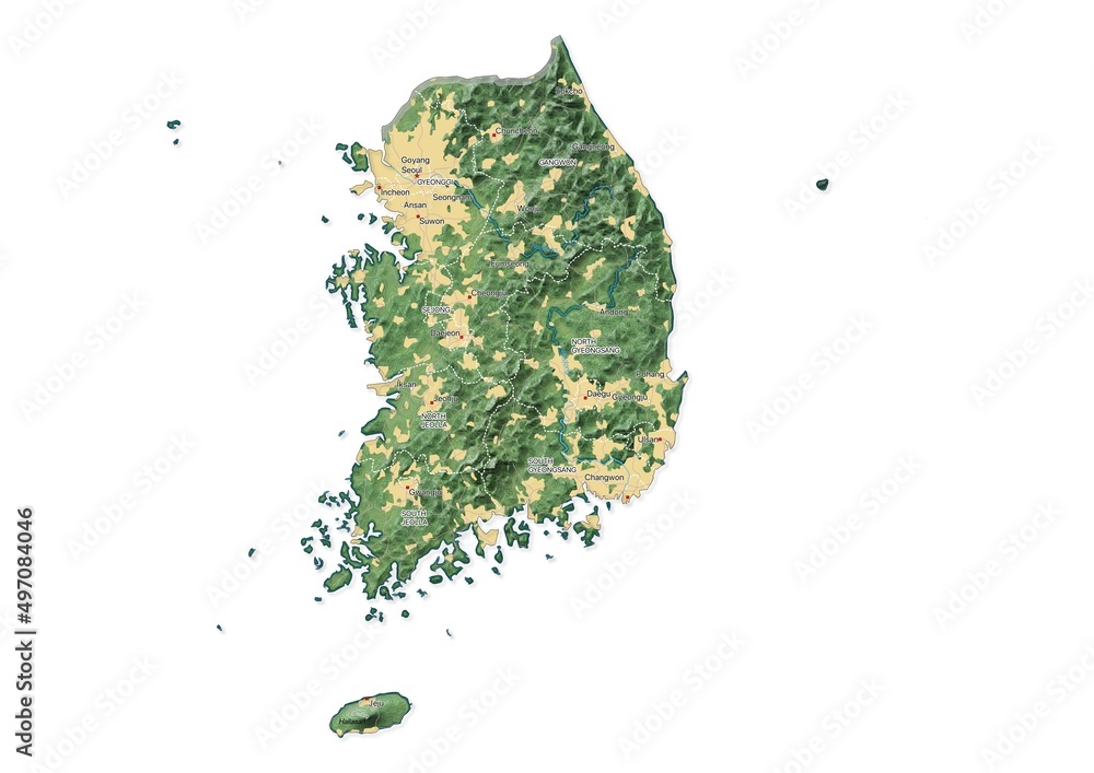 Fototapeta Isolated map of South Korea with capital, national borders, important cities, rivers,lakes
