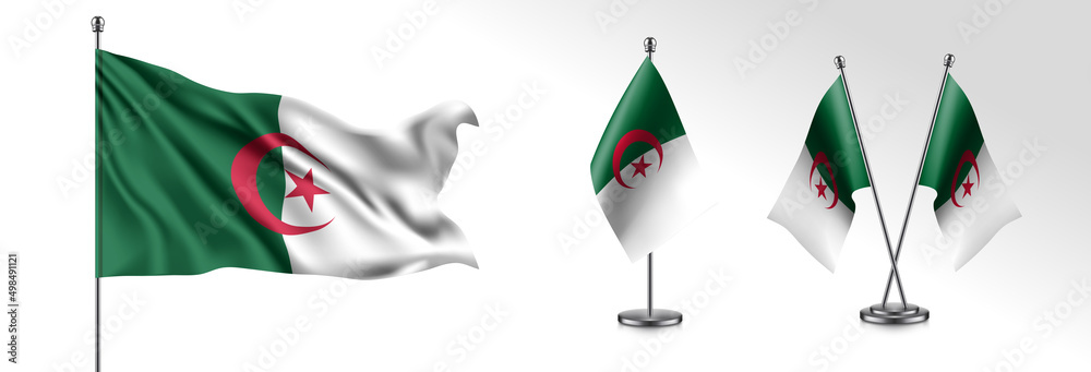 Fototapeta Set of Algeria waving flag on isolated background vector illustration