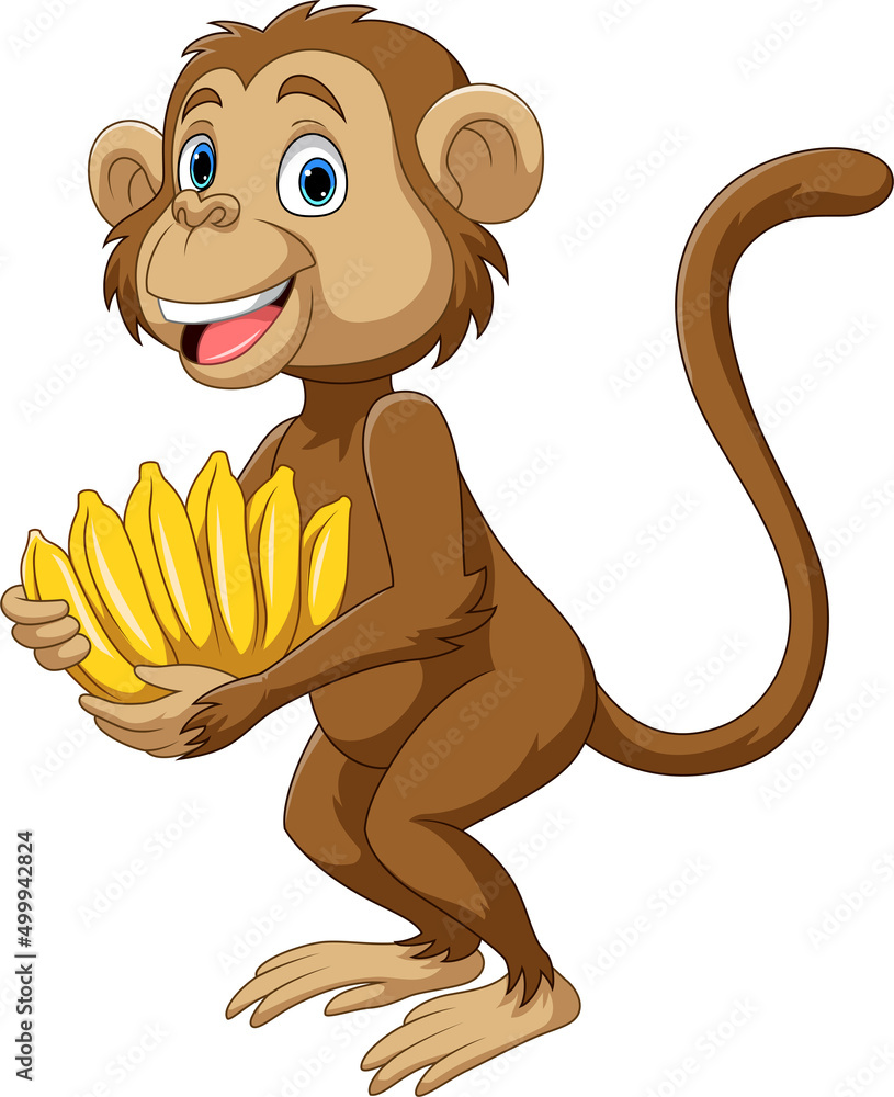 Fototapeta Cartoon little monkey holding banana