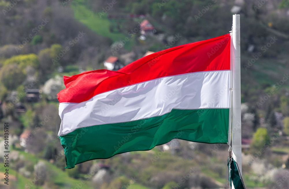 Fototapeta a close-up of the Hungarian flag fluttering in the wind
