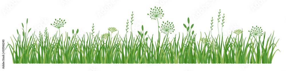 Fototapeta Green grass border, meadow herb and grass, vector illustration