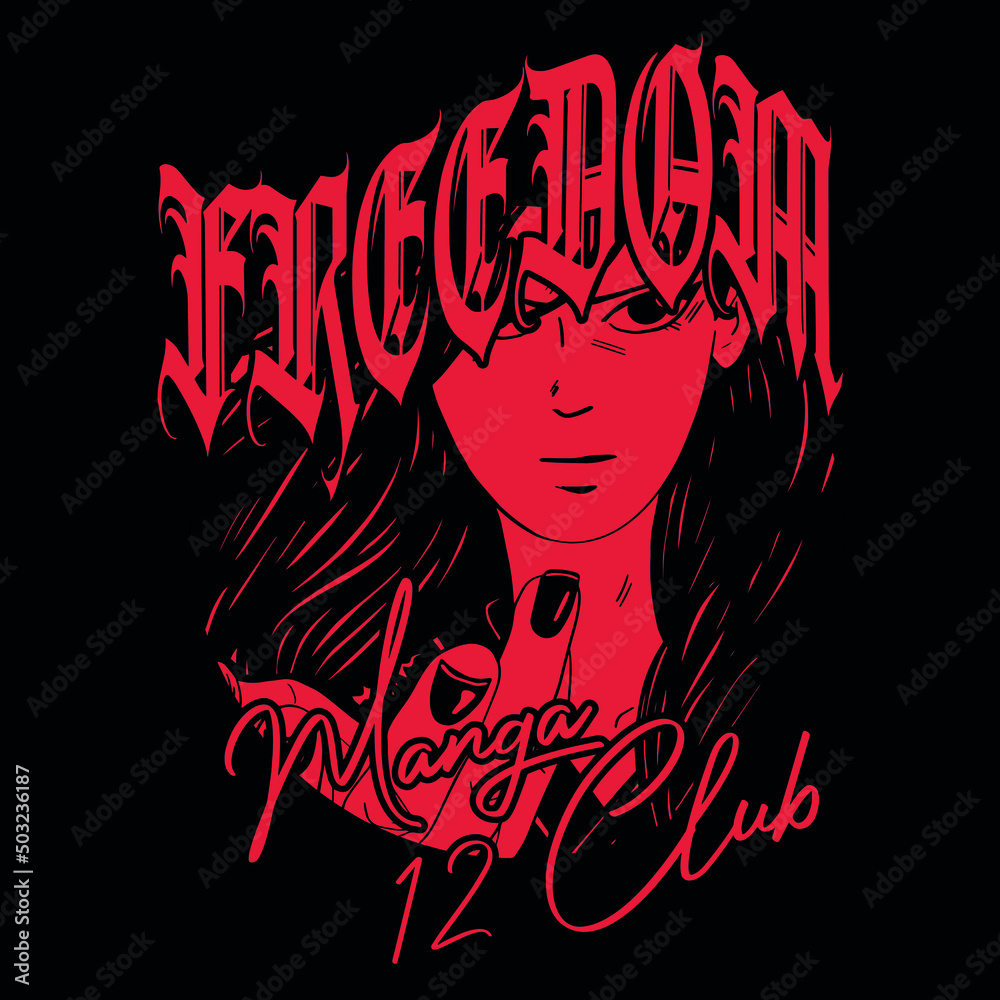 Fototapeta Manga style face draw with slogan Vector design for t-shirt graphics, banner, fa