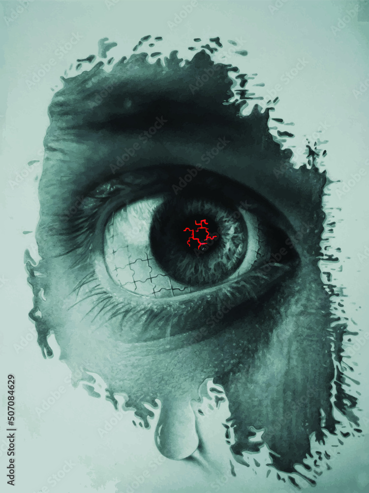 Fototapeta Vector illustration of close up of mutant human red eye on the white background