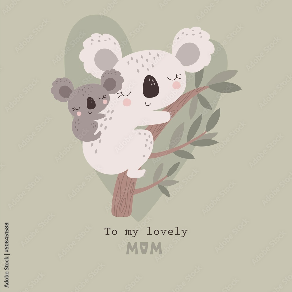 Fototapeta Happy Mother's Day card with cute coala. Vector illustration