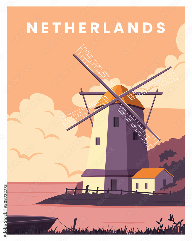 Fototapeta Netherland Travel Landscapes Vector Illustration with windmill