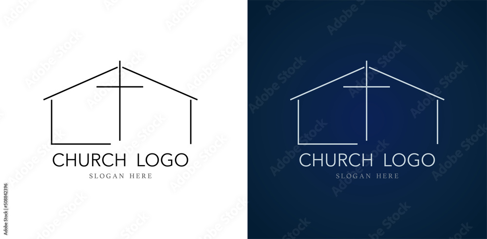 Fototapeta Church logo with cross and house design vector illustration isolated on white background