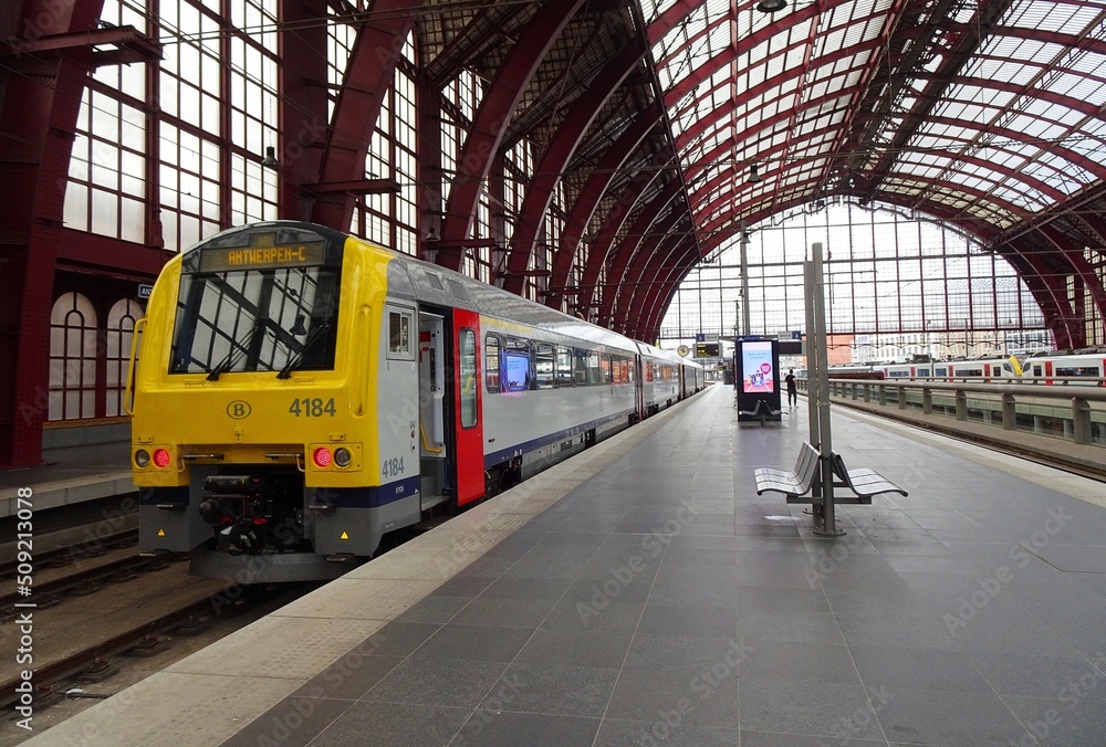 Fototapeta Passenger train in Antwerp Central station, Belgium