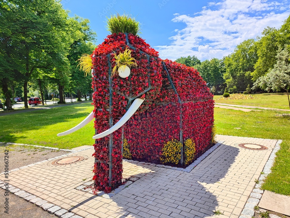 Fototapeta Elephant sculpture made of flowers