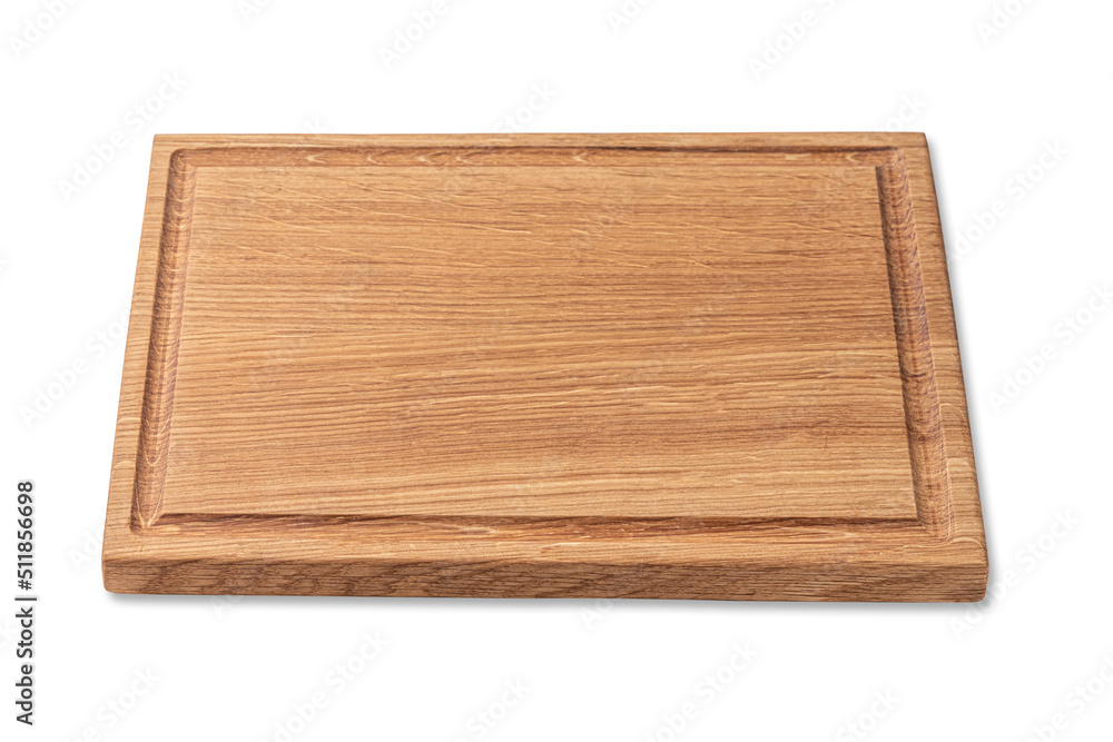 Fototapeta rectangular wooden cutting board with edging isolated on a white background