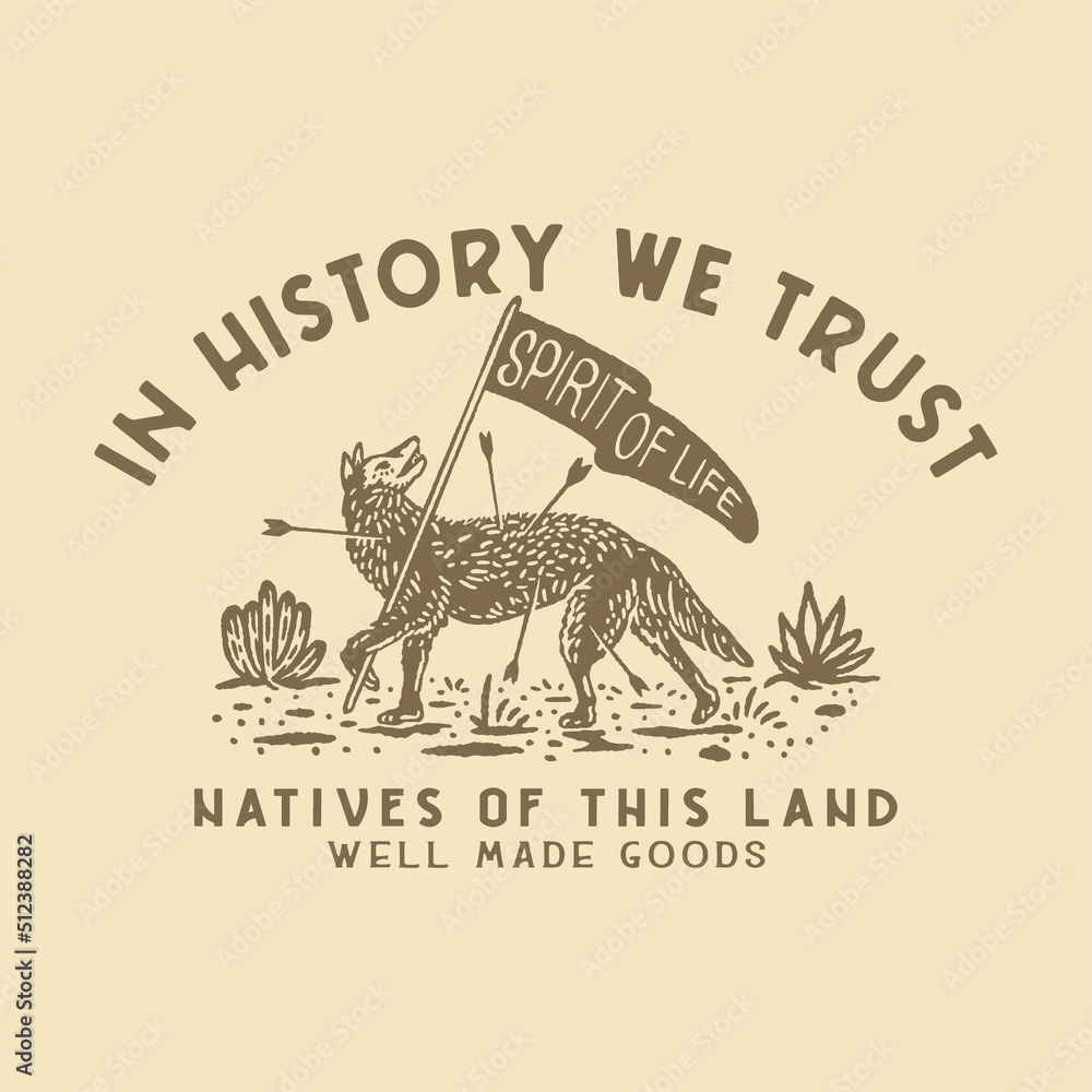 Fototapeta coyote illustration land badge native emblem desert vintage design t shirt