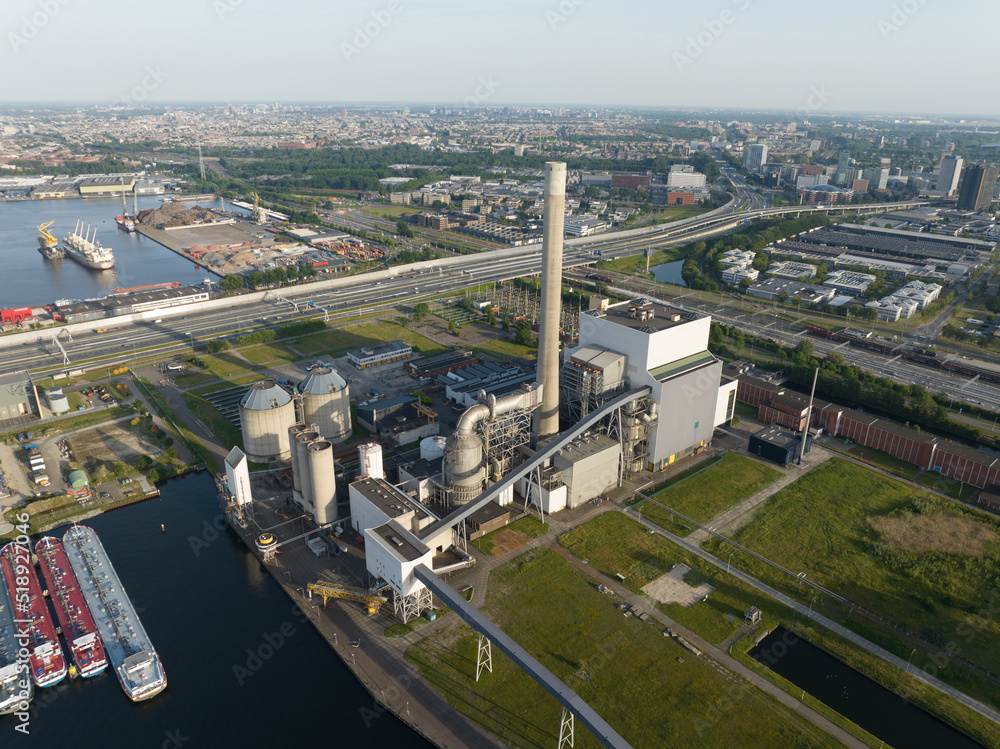 Fototapeta Old electricity power plant station factory building generation through coal now switched over to natural gas in the Municipality of Amsterdam in west