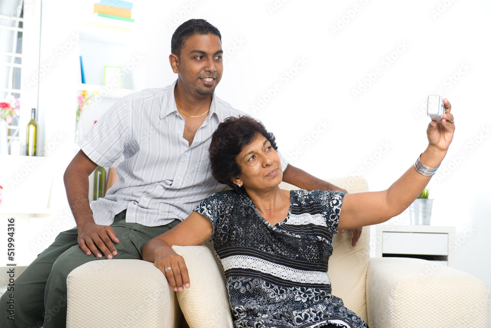 Fototapeta indian family lifestyle photo , son and mother taking self photo