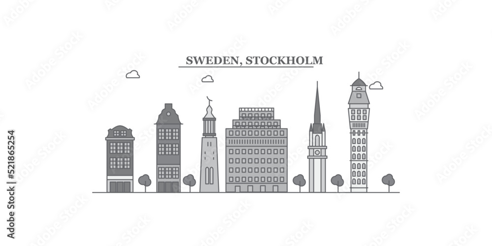 Fototapeta Sweden, Stockholm city skyline isolated vector illustration, icons