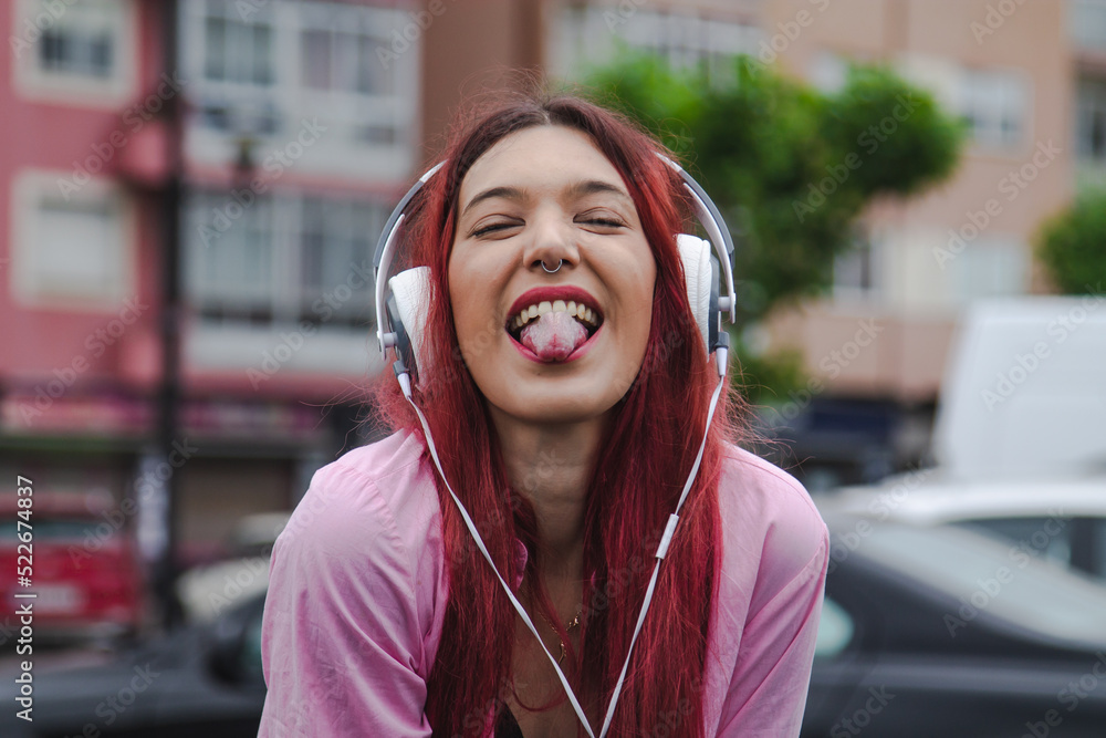 Fototapeta happy young girl with rebel expression and headphones