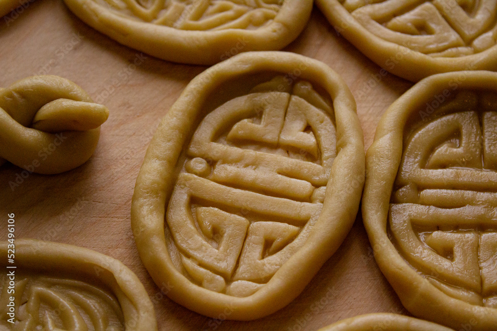 Fototapeta Uncooked mongolian traditional boov biscuits
