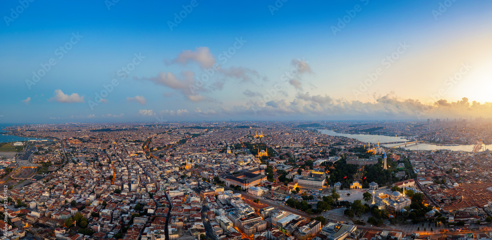 Fototapeta Aerial view of Istanbul city at sunrise in Turkey.