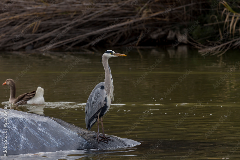 Fototapeta White great heron (Great egret) resting near the pond on a sunny day