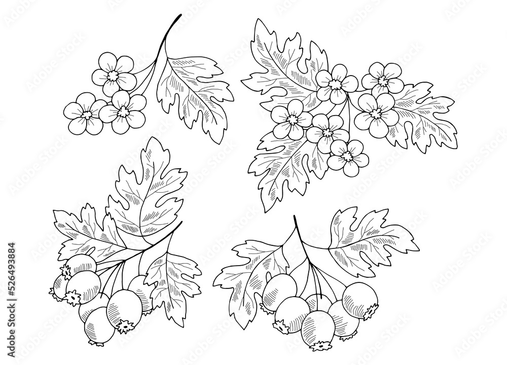 Fototapeta Hawthorn plant graphic black white isolated sketch illustration vector
