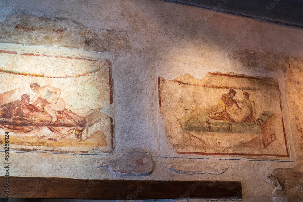 Fototapeta Original mural in a former brothel in Pompeii, Italy