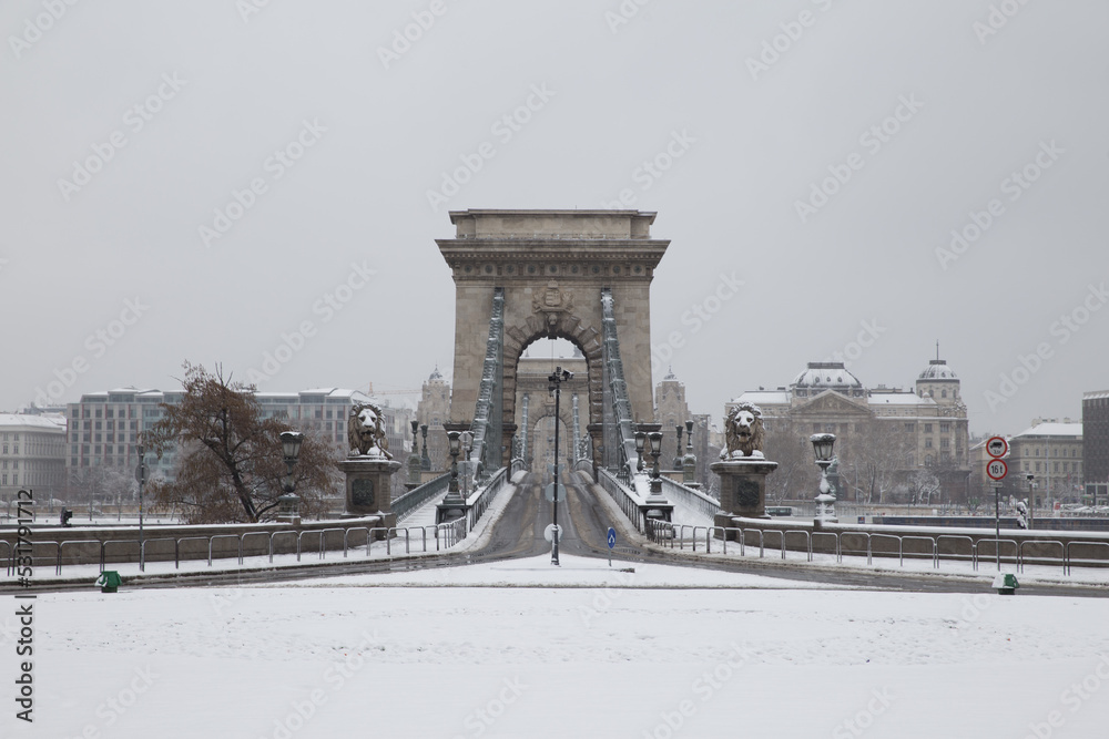 Fototapeta capital city streets budapest after a night falling a lot of snow