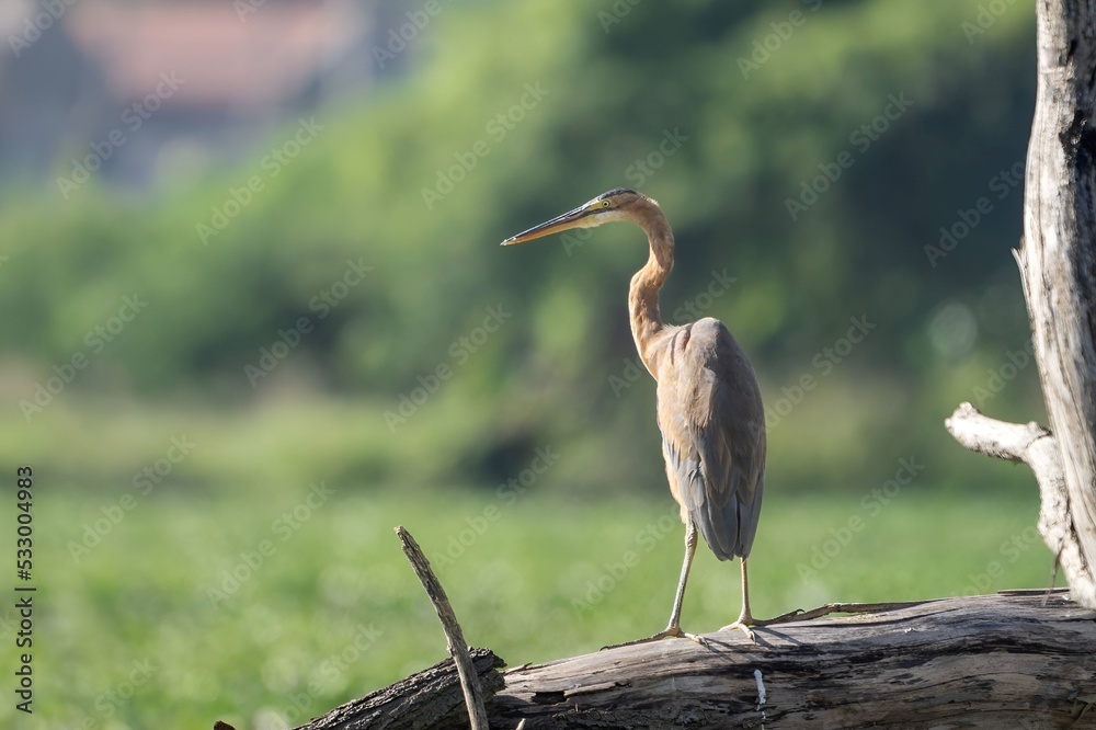 Fototapeta purple heron (Ardea purpurea) close to a pond