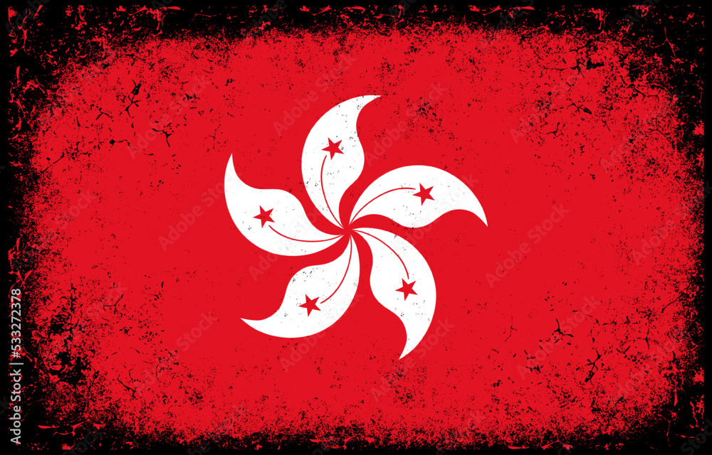 Fototapeta old dirty grunge vintage hongkong national flag illustration