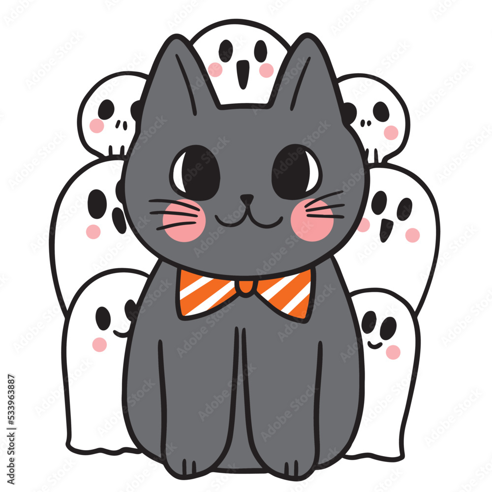 Fototapeta Black cat on Halloween,Cute cartoon character vector.