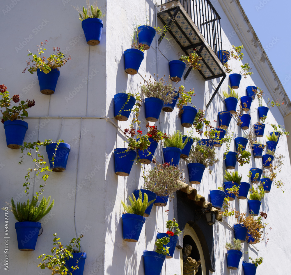 Fototapeta Barcelona - Building with Blue Pots in Poble Espanyol