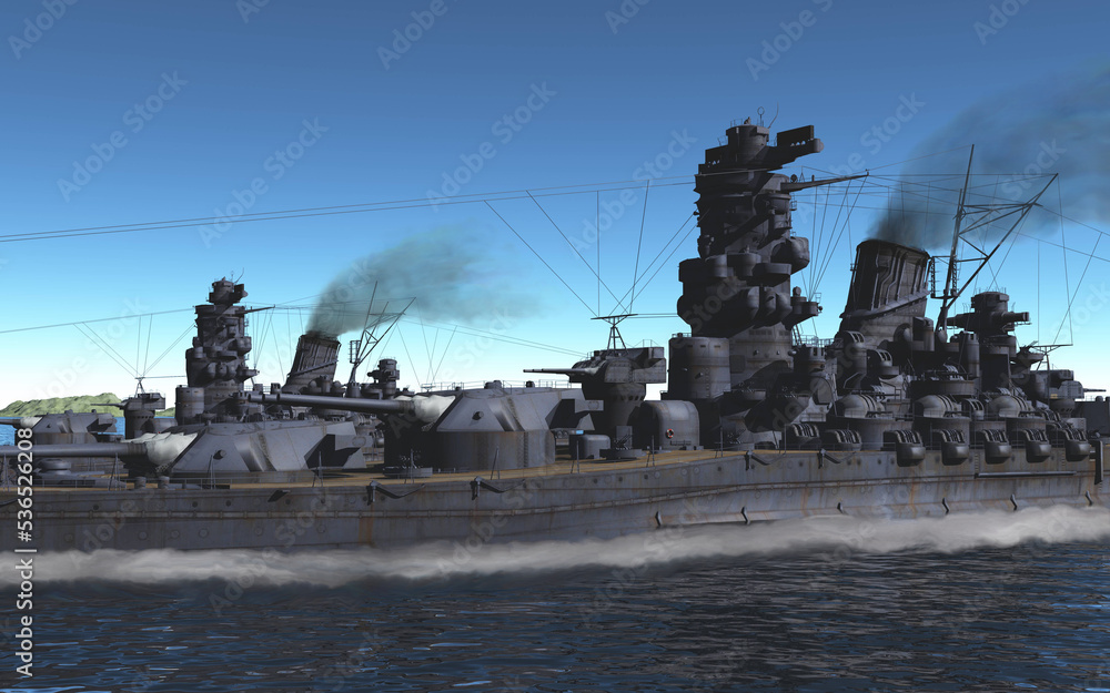 Fototapeta 呉軍港を出港し、瀬戸内海を並走する連合艦隊戦艦「大和」と「武蔵」