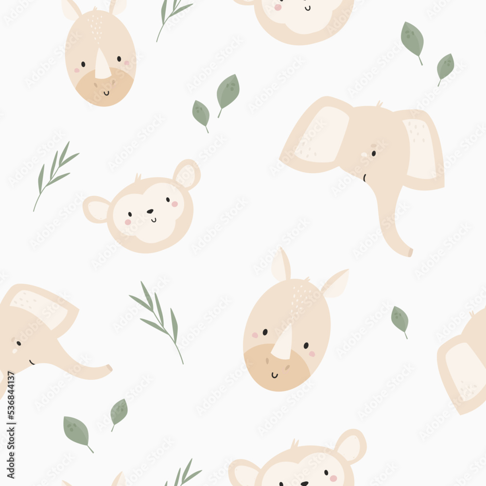 Fototapeta Seamless pattern with cute african animals rhino, elephant and monkey